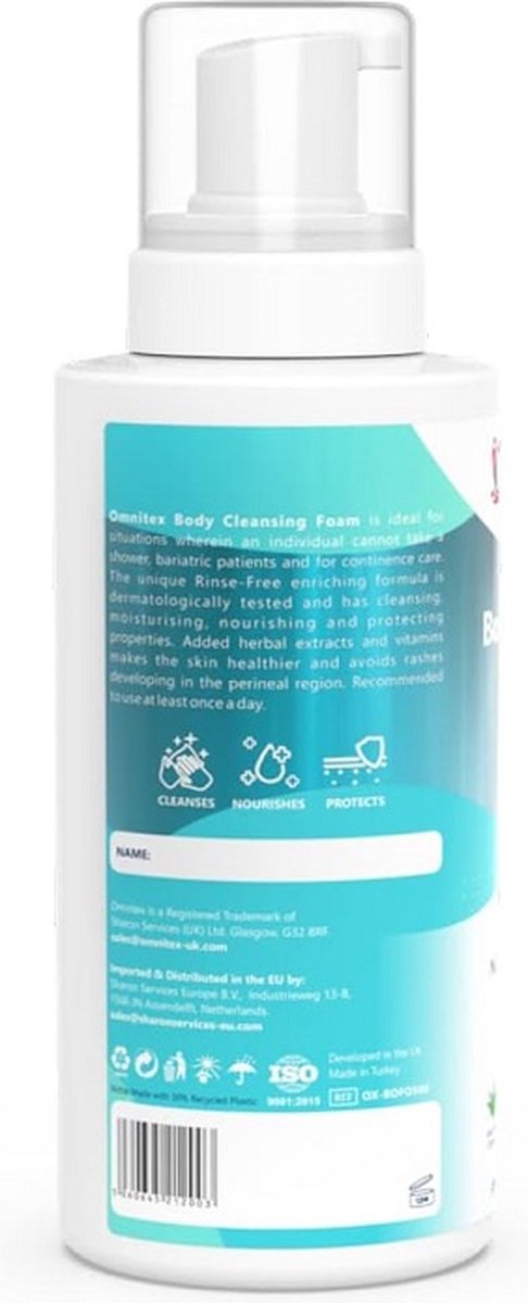 Deze zacht geurende Omnitex Body Cleansing Foam, spoelvrije lichaamsreinigingsschuim is ontworpen voor het verfrissen, voeden, en beschermen van de huid van mensen die niet in staat zijn om te douchen. De verrijkte samenstelling legt een beschermende laag aan tijdens het reinigen, die helpt de huid gehydrateerd te houden en beschermt tegen irritaties en het contact met lichaamsvloeistoffen.